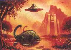 Martin was then shown a "film/video-like" device showing pictures of the far past of our sunsystem. He was shown the missing 5.planet they called Satanis. He was shown an explosion on that planet which changed the system and made it to the asteroidbelt of today. He was shown the big dinosaurs living 70mill.years back and the heavy plantlife – gigantic trees. He was shown the early humanoid lifeforms of dark and lightbrown-skinned humanoids - 2 different races.