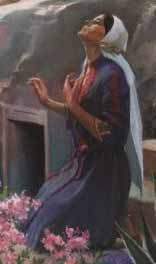 Jeg nærmet meg henne, og jeg så at hun gråt stille, mens hun la blomstene ned på en lav jordhaug. Hennes stemme mumlet blidt: "Åh, min elskede, min elskede, kommer du aldri tilbake til meg? Kan du virkelig være død? Og er du nå der hvor min kjærlighet ikke kan følge deg? Der hvor du ikke kan høre min stemme. Min elskede - åh, min dyrebare elskede!"