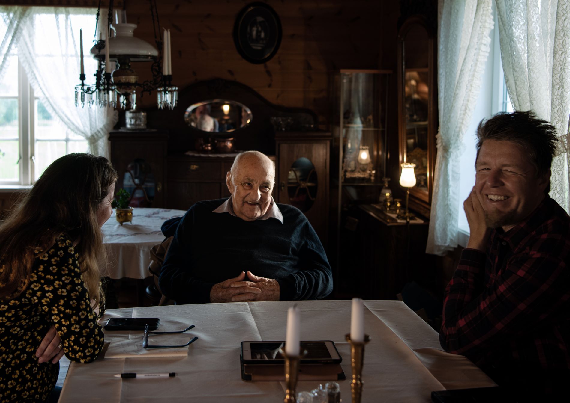 Joralf virker sliten etter maten og all praten, selv om han benekter at han er trøtt. Øynene siger igjen, og svarene blir kortere.